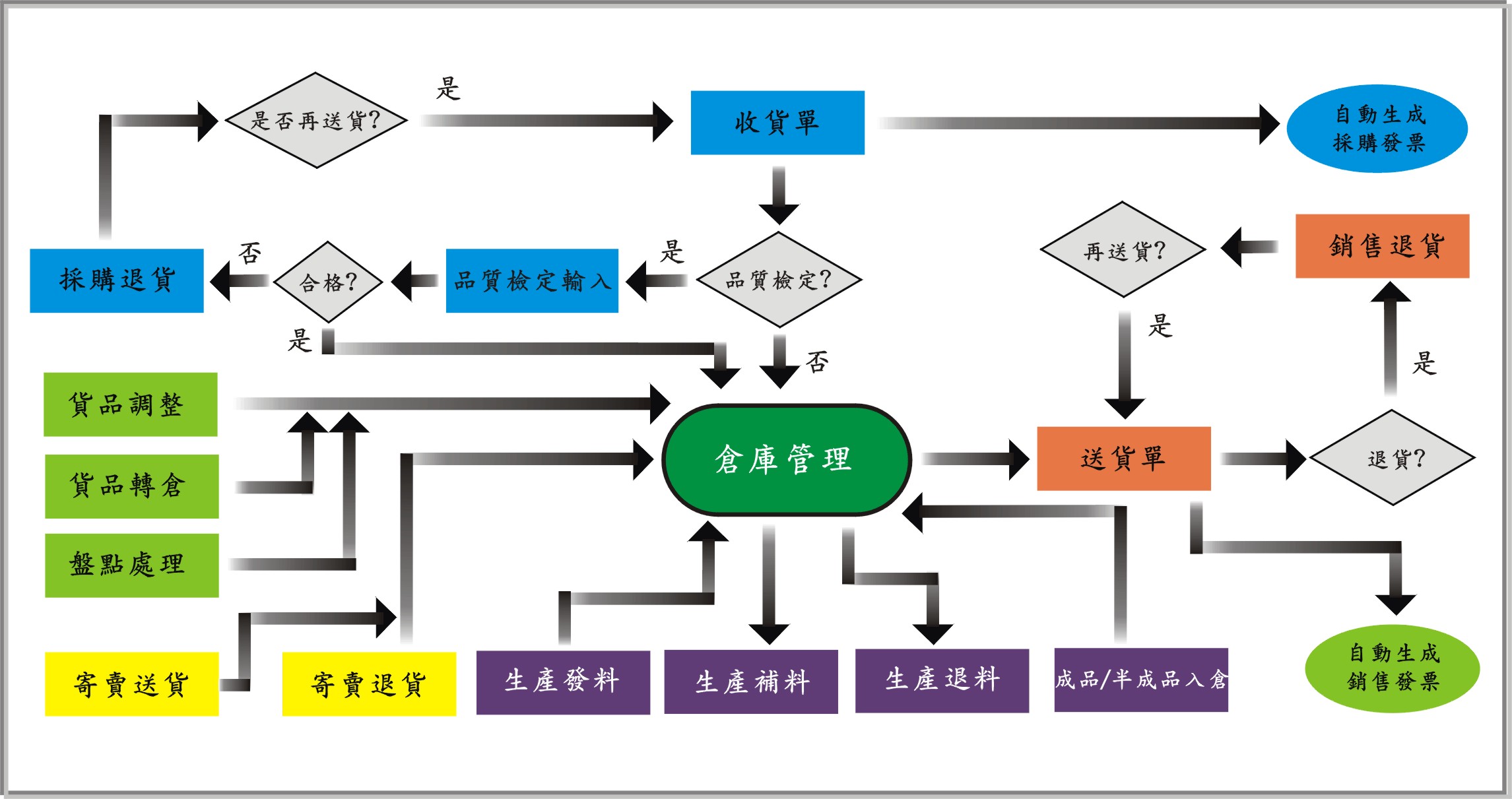 根据多种入库来源,灵活处理仓库管理的各项入库业务分类及相关业务单据;根据生产单作生产产品入库,系统同时会将工作中心相应原料进行扣减;根据销售退货单作退货入库;根据采购订单作采购入库,允许多次收货及订单合并收货,系统自动计算剩余需求量,可以控制收货是否一定需要订单,收货是否可以超过订单数量。